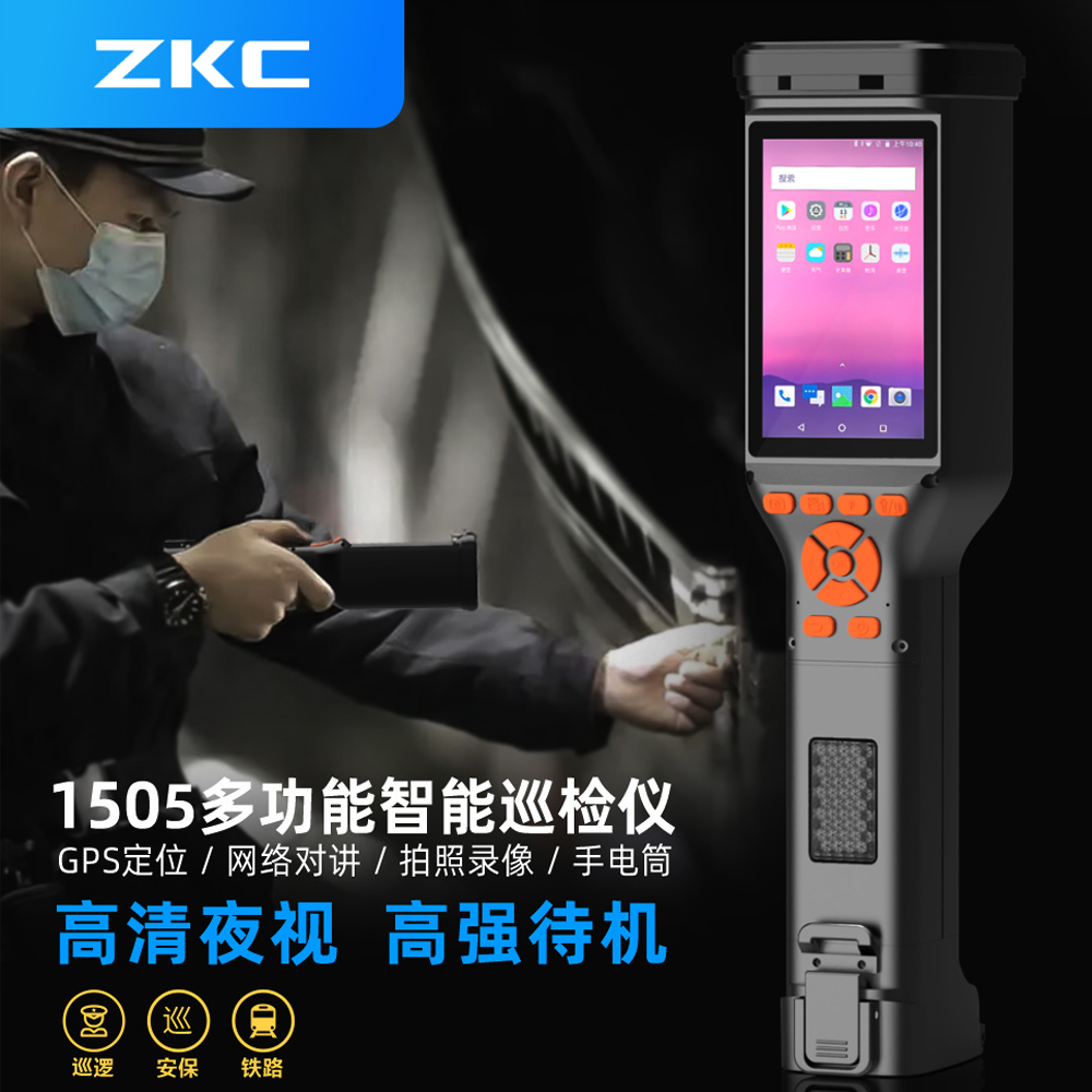 ZKC1505智能巡检手电筒/巡更机/巡检仪,屏幕外观、配色、性能全升级。具备强光照明、拍照录像、语音对讲、激光测距、远距离测温和强劲的数据通讯能力,辅助一线巡检员操作,提高工作效率。帮助企业、电力、消防、安全、环保等行业解决日常巡检/巡更的安全管理需求。搭载安卓8.1平台,功能拓展更强,应用更丰富。